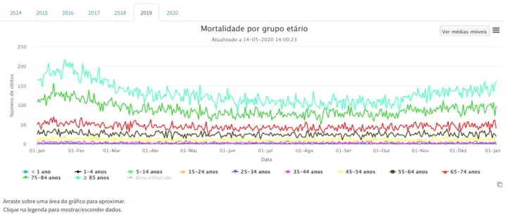 - ↑ "SICO – eVM | Mortalidade por grupo etário". Evm.min-saude.pt.