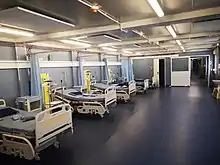 On 22 March, the first three deaths were reported in Romania. All three had preexisting conditions: one was on dialysis, one had terminal lung cancer, and one had diabetes.[55][56] The next day, on 23 March, Suceava's main hospital, the Saint John the New Emergency County Hospital of Suceava, one of the largest in the country, reported at least seventy medical personnel infected with COVID-19, and 2 patients passing away.[57][58] Over the following days, their numbers would increase.[59][60][61][62][63] The hospital director was dismissed, shortly thereafter, for mismanagement.[62]