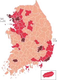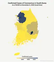 ![]() Coronavirus pandemic in South Korea over time (since 20 January 2020). Day not included in map Day included in map Last day included in map | |