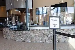 Yellowstone reopened to the public with a long line of cars at the east entrance on May 18, 2020, after being closed for seven weeks.[15] Within two hours of opening 200 cars entered the park. The Wyoming entrance opened first to control the flow of tourism into the park.[16] The park did not allow lodging, food service or any tour buses, and many visitors did not wear masks.[15][16]