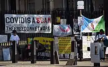 Anti-government groups such as sovereign citizens and freemen on the land also took part in the anti-vaccine movement.[127][128][129][130]