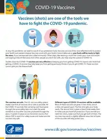 - ↑ Gee J, Marquez P, Su J, Calvert GM, Liu R, Myers T, et al. (February 2021). "First Month of COVID-19 Vaccine Safety Monitoring - United States, December 14, 2020-January 13, 2021". MMWR. Morbidity and Mortality Weekly Report. 70 (8): 283–288. doi:10.15585/mmwr.mm7008e3. PMC 8344985. PMID 33630816.