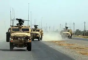 An RG-33 convoy with CROWS remote weapons stations attached.