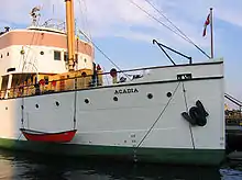 ![]() CSS Acadia preserved as a museum ship alongside the wharves of the Maritime Museum of the Atlantic in Halifax, Nova Scotia in 2007 | |