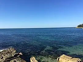 The Cabbage Tree Bay Aquatic Reserve encompasses various habitats in a small area, with a sandy beach to the east, a rocky shore to the south, and reefs, seagrass meadows, and kelp forests.[2] A small colony of hard corals of the species Pocillopora aliciae was also found in the bay. These actually only occur in tropical waters, but their distribution area is shifting due to global warming.[4]