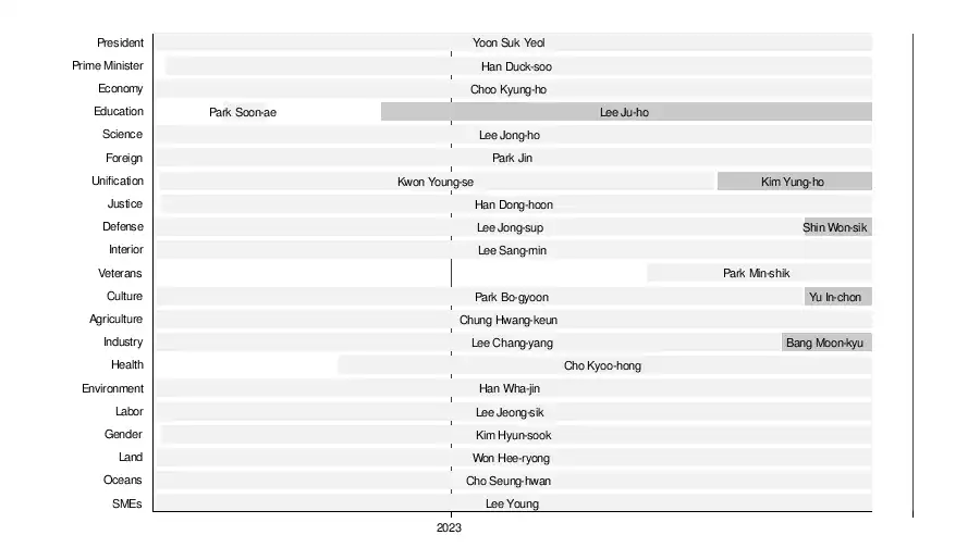 | Minister for Government Policy Coordination | Bang Moon-kyu | 8 June 2022 | Incumbent | ||