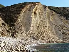The southern limit is located at an elevation south of Arrábida (at the Arrábida fault) and the southern limit corresponds to the watershed transition situated more to the north.[2][4] In addition to these faults, there are also faults with variable directions between east-west and northeast-southwest, that divide the basin into different tectonic-sedimentary areas, that could have influenced sediment deposition during Mesozoic.[2][4] The BL is filled with sediments between the late Triassic and late Cretaceous, including alternating layers of marine carbonates, clastic carbonate coastal sediments, fluvial and estuarine siliciclastic deposits, among others.[2]