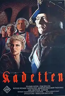 Cadets (German: Kadetten) is a 1939 German historical war film directed by Karl Ritter and starring Mathias Wieman, Carsta Löck, and Andrews Engelmann. The film is set in 1760, against the backdrop of the Austro-Russian Raid on Berlin during the Seven Years' War. It depicts a group of Prussian cadets holding off superior Russian forces.