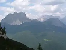 Cadini di Misurina (Ciadìs de Meśorìna in Ladin) is a group of mountains in the eastern Dolomites in the Province of Belluno, Italy. These mountains rise to the west of Auronzo di Cadore, north-east of Cortina d'Ampezzo and south of Dobbiaco, in a position overlooking Lake Misurina. They are part of the Dolomites subsection of Sesto, of Braies, and of Ampezzo, and belong to the municipality of Auronzo di Cadore. The highest peak is the Cima Cadin of San Lucano (2.839 m a.s.l.).