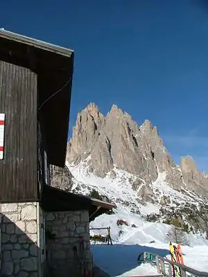 The mountain range is crossed by the Alta Via n. 4 path and from the equipped Alberto Bonacossa path, which starts from the southern shore of the lake and reaches the Tre Cime di Lavaredo. The particular geomorphology that characterizes the Cadini di Misurina allows one to cross the group by various lines so that, going up and down from their forks, it becomes possible to enjoy the dolomitic paradise that surrounds them. The equipped path Giovanni Durissini allows for example to complete tour of the branch of San Lucano. It is a ring route, starting at the Fonda-Savio refuge (2,367 m), which runs in sequence the Torre fork (2,400 m), the Sabbee fork (2,440 m), the Cadin Deserto fork (2,400 m), the Cristina fork, the de la Neve fork (2,471 m) and lastly the Nevaio fork (2,620 m), with a total height difference of about 1,000 M. The first climb dates back to 31 August 1896 by Giovanni Siorpaes, Pietro Siorpaes, Ilona Eötvös, Rolanda Eötvös, Johann Innerkofler, and Loránd Eötvös.