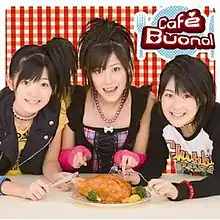 Café Buono! is the first album from the J-pop idol group, Buono! released on February 20, 2008. The standard album comes with a Buono! photocard while the limited edition, first press version includes a different photocard and a DVD.[1]