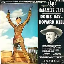 Calamity Jane was the name of a 10" LP album, released by Columbia Records (as catalog number CL-6273) on November 9, 1953, of songs sung by Doris Day and Howard Keel from the movie of the same name. In the UK, the album was also released as a 10" minigroove album by Philips Records, catalogue number BBR8104.