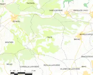Map of Calce and its surrounding communes