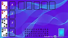 Calculation (also known as Broken Intervals,[1] Hopscotch[2] and Four Kings Solitaire[3]) is a solitaire card game played with a standard pack of 52 cards.[4] It is part of the Sir Tommy family of patience games. It has its origin in France, where it is known as La Plus Belle.[5]