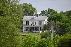 It is a two-story hip-roofed frame house with decorative features derived from Queen Anne pattern books. The listing included a second contributing building, an original frame barn.[2]