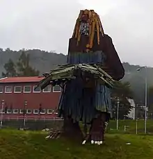 His first large sculpture was Jätten Vist (the Vist the Giant) completed in 1969 and standing over 11 metres (36 ft) high next to the European route E4, at Huskvarna. According to the legend, the giant was on the way home from a party in Västergötland. He threw some grass and soil into lake Vättern for his wife to step on, thus creating the island Visingsö.[2][3]