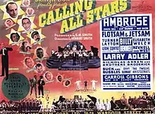 Calling All Stars is a 1937 British musical comedy film directed by Herbert Smith and starring Arthur Askey, Evelyn Dall and Max Bacon. The film is a revue, featuring a number of musical acts playing themselves. It was made at Beaconsfield Studios for release as a quota quickie.[1] The film's art direction is by Norman G. Arnold.[2]