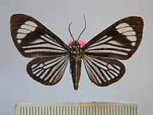 - ↑ Toulgoët, Hervé de & Navatte, Jocelyne (2000). "Calodesma uraneides (Butler, 1871)". Illustrated Catalogue of the Arctiidae Arctiinae and Pericopinae of French Guyana Found in the Collection of the Museum National d'Histoire Naturelle in Paris. Retrieved September 12, 2019.