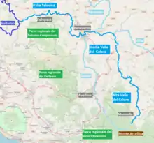 ![]() Map of the Calore River and its three main tributaries | |