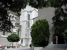 The auditorium lies directly adjacent to St. Pierre Cathedral in the Place de la Taconnerie. The austere Gothic-style building was constructed in the 15th century, on the site of earlier 5th-century religious buildings, and was originally dedicated to Notre-Dame-la-Neuve.