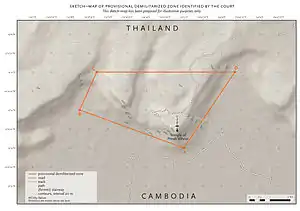 - ↑ "Request for Interpretation of the Judgment of 15 June 1962 in the Case concerning the Temple of Preah Vihear (Cambodia v. Thailand) (Cambodia v. Thailand), Provisional Measures, I.C.J. Reports 2011 (II), pp. 555-556, para. 69, point B.2 of the operative part" (PDF). icj-cij.org. Archived from the original (PDF) on October 17, 2013. Retrieved April 4, 2018.