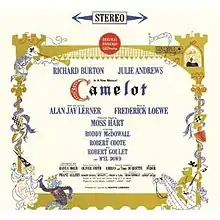 Camelot opened on Broadway at the Majestic Theatre on December 3, 1960, and closed on January 5, 1963, after 873 performances and 2 previews.[24] Directed by Moss Hart, the choreography was by Hanya Holm, scenic design by Oliver Smith, costume design by Adrian (who worked on the designs prior to his death in September 1959) and Tony Duquette, and lighting design by Abe Feder. It won four Tony Awards. The original cast album was America's top-selling mono LP record for 6 weeks.[25]