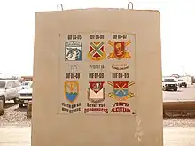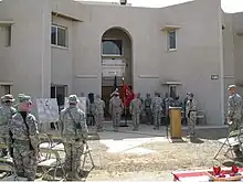 The camp was captured by the Division Artillery (DIVARTY) of the 4th Infantry Division. The base was then referred to as Forward Operating Base (FOB) Gunner. However, most still simply referred to it as Al Taji or simply Taji .[4] The Base Defense Operations Center and Mayor Cell during this time was operated by the 44th Rear Area Operations Center, Illinois Army National Guard. In early May 2003, Elements of DIVARTY'S 2nd Battalion, 20th Field Artillery and the 1st Battalion, 44th Air Defense Artillery conducted stability and security operations in and around FOB Gunner until March 2004. The 5th Battalion, 3rd Field Artillery Regiment from Fort Sill, Oklahoma, also arrived in early May 2003 to provide security support for the Airfield until they were reassigned to Camp Cedar II (Tallil Air Base) in the late fall of 2003.[5] The 751st Quartermaster Company (Arizona Army Reserve), was located at the camp from May 2003 until April 2004. It established the C.E.M. (Captured Enemy Materials) warehouses, storing weapons, ammunition, vehicles, statues, and anything deemed historically significant. When unit arrived in Iraq, the 3rd Platoon (Warehouse Platoon) of the 751st Quartermaster Company, was tasked with a non-standard warehouse mission to store, receive and issue Captured Enemy Equipment and Weapons (CEE), the unit handled more than 180,000 captured enemy weapons and more than 1.2 million pieces of captured Class II (OCIE/Uniforms) items. Every day, the Soldiers unload Iraqi warehouses filled with thousands of Class II items, relocating the captured items to the CEE warehouse, where they are entered into a computer database designed to make tracking the equipment more efficient. The database also possesses the capability to issue the CEE class II items and weapons in support of Coalition forces responsible for the training of the Iraqi Civil Defense Corps (ICDC), as well as the Iraqi police force. Among the many accomplishments of the 751st are: