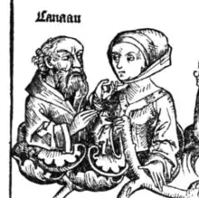 According to Genesis 9:20–27, Noah became drunk and afterward cursed Canaan. This is the Curse of Canaan, called the[12] "Curse of Ham" since Classical antiquity because of the interpretation that Canaan was punished for his father Ham's sins.[13] However, there are interpretations that Canaan was the sole sinner himself.[14] The sin in question is debated, ranging from literal voyeurism,[15] castration or incestuous rape.[16]