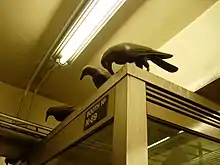 The station also has three closed exits. One exit, located at the southern end of the station, led to the southeast corner of Walker Street and West Broadway.[38][39] The other two are located in a passageway that extends further north than the current northernmost open exit; one led to the southeast corner of Grand Street and Sixth Avenue; the other led to Grand Street and Sullivan Street on the west side of Juan Pablo Duarte Square.[38][40] The passageway currently houses employee facilities.