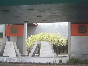 The station logo depicts the transverse section of Canal del Norte (Northern Channel) a waterway that connected Mexico City with La Villa in the colonial era.[2]