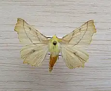 Ennomos alniaria, the canary-shouldered thorn, is a moth of the family Geometridae. The species was first described by Carl Linnaeus in his 1758 10th edition of Systema Naturae. It can be found in Europe in a wide variety of biotopes where there are deciduous trees, perhaps mostly in deciduous forests and gardens.