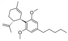 Cannabidiol dimethyl ether (CBDD) is a trace component of cannabis which can also be made synthetically. It is a potent and selective inhibitor of the enzyme 15-lipoxygenase and inhibits oxygenation of linoleic acid, a process involved in the development of atherosclerosis.[1][2]