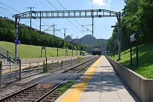 ![]() Canora station platform before reconstruction, looking east towards the portal of the Mount Royal Tunnel | ||||||||||||||||||||||||||||||||||||