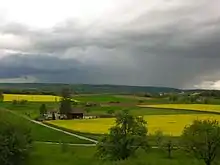Schaffhausen is the northernmost canton of Switzerland and lies almost entirely on the right bank of the Rhine, with only part of Stein am Rhein on the left bank. It lies west of Lake Constance and has an area of 298 km2 (115 sq mi).[5] Much of the canton is productive agricultural land, with 134.4 km2 (51.9 sq mi) (about 45%) of the canton used for agriculture while an additional 128.7 km2 (49.7 sq mi) (about 43%) is wooded. Most of the rest of the canton, 31.8 km2 (12.3 sq mi) (about 10%), is developed, while only 3.8 km2 (1.5 sq mi) (1.3%) of the canton is unproductive (rivers, lakes or mountains).[6]