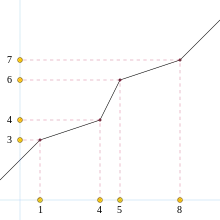 The same back-and-forth method used to prove Cantor's isomorphism theorem also proves that countable dense linear orders are highly symmetric. Their symmetries are called order automorphisms, and consist of order-preserving bijections from the whole linear order to itself. By the back-and-forth method, every countable dense linear order has order automorphisms that map any set of points to any other set of points. This can also be proven directly for the ordering on the rationals, by constructing a piecewise linear order automorphism with breakpoints at the given points. This equivalence of all -element sets of points is summarized by saying that the group of symmetries of a countable dense linear order is "highly homogeneous". However, there is no order automorphism that maps an ordered pair of points to its reverse, so these symmetries do not form a 2-transitive group.[1]