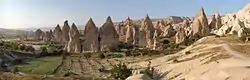 The name, traditionally used in Christian sources throughout history, continues in use as an international tourism concept to define a region of exceptional natural wonders, in particular characterized by fairy chimneys,[3] in addition to its religious heritage of being a centre of early Christian learning, evidenced by hundreds of churches and monasteries (such as those of Göreme and Ihlara), as well as underground cities that were dug to offer protection during periods of persecution.[4][5]