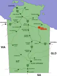 Location of Cape Crawford in Northern Territory (red)