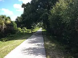 The Charlotte Harbor and Northern Railway, which served Gasparilla Island, existed from 1907 until 1981.[2] Charlotte County gained ownership of the right of way in 1985, and the first portion of the trail was built in 1999 from the Mercer trailhead to Rotonda Boulevard. It was extended over Coral Creek to the Coral Creek Golf Club in 2005. The southernmost portion along County Road 771 from Coral Creek Country Club to Placida was completed in 2010.