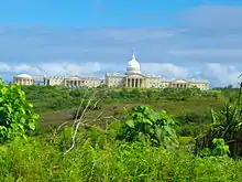 The Capitol of Palau is the palace of the Palau National Congress.[1] and is located in Ngerulmud, the administrative capital of the country. Its design is based on the United States Capitol.[2]