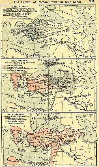![]() The Roman empire in the time of Hadrian (117–138 AD), with the imperial province of Cappadocia highlighted. | |||||||||