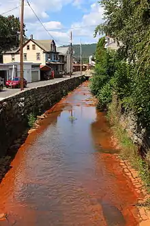 The entire length of Carbon Run is designated as an impaired waterbody. The cause of the impairment is metals other than mercury and the source of the impairment is abandoned mine drainage.[3] Its two unnamed tributaries are also impaired.[4] The stream is impacted by acid mine drainage and the Sterling Mine discharge is in its watershed.[5] The acid mine drainage causes it to have an orange color.[6]