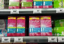 Carefree is an American brand of pantyliners (although originally the brand name belonged to tampons[1]) from Johnson & Johnson. In the US, the Carefree brand was formerly marketed by McNeil-PPC and currently being marketed by Edgewell Personal Care (along with other US feminine hygiene brands from Johnson & Johnson).[2]