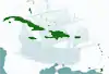 Archaeologists have determined that humans have been living in the Caribbean islands for nearly 6,000 years.[1] The first inhabitants were an ancient Arawak people who migrated from the lowland river basins of South America; since before European colonization, the islands had experienced several large migrations from the surrounding mainlands and within the archipelago.[1] The oldest artworks found have been attributed to the Saladoid people, the ancestors of the Taino people; their ceramics, carved stones, and shell objects have been found in archaeological sites dating back to between 500 and 250 B.C.[2] A number of regional ceramic traditions developed throughout the next 2,000 years. The height of pre-colonial Caribbean art emerged between 1000 and 1492 with the Taino people, whose ceramic production, rock art, stonework, and other artworks are historically the most significant and widespread in the region.[2]
