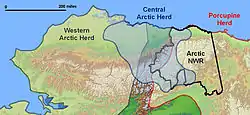 - 1 2 3 4 Russell, Don; Gunn, Anne (February 3, 2019). "Vulnerability analysis of the Porcupine Caribou Herd to potential development of the 1002 lands in the Arctic National Wildlife Refuge, Alaska" (PDF). Shadow Lake Environmental, Environment Yukon, Environment and Climate Change Canada, and NWT Environment and Natural Resources: 144. Archived (PDF) from the original on June 19, 2019. Retrieved September 4, 2019.