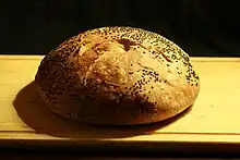 Carl Griffith's sourdough starter, also known as the Oregon Trail Sourdough or Carl's starter, is a sourdough culture, a colony of wild yeast and bacteria cultivated in a mixture of flour and water for use as leavening.[1] Carl's starter has a long history, dating back at least to 1847, when it was carried along the Oregon Trail by settlers from Missouri to Oregon. It was then passed down as an heirloom within the family of Carl Griffith, who shared it via Usenet in the 1990s.[1] Since the year 2000, it has been maintained and shared by a dedicated historical preservation society; its volunteers keep the starter alive, feeding the organisms flour and water, and mail free samples worldwide on request for use by bakers in seeding their own cultures.[2]