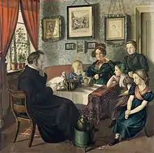 His father was a grocer whose business had been nearly ruined by the French Occupation. After a financially difficult youth, his desire to improve himself led to art lessons with Gerdt Hardorff and Siegfried Bendixen and a lasting association with the artistic family of Johannes Michael Speckter. Later he, Otto Speckter and Erwin Speckter toured Northern Germany with the support of art historian Carl Friedrich von Rumohr.[1] They were all most impressed with the old Hanseatic city of Lübeck. On Rumohr's advice, Milde went to study at the Dresden Academy of Fine Arts in 1824. Later, he studied briefly at the Academy of Fine Arts, Munich, followed by a visit to Italy.