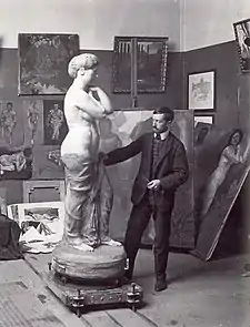 After his father's early death, his family moved to Basel. He began his studies in 1896, as a student of the painter, Fritz Schider, then attended a private school operated by Heinrich Knirr in Munich. In 1899, he took a trip to Rome with his friend, Heinrich Altherr, drew his interests toward sculpting. In 1901, he started work on his first sculpture, featuring Zeus and Eros. He then came under the influence of Max Klinger and created a statue of Venus in 1904. Five years later, he won a competition for the design of niche figures and façade reliefs at the Kunsthaus Zürich. The reliefs featured Amazon figures that were cut by his assistant, Louis Léon Weber in 1912.