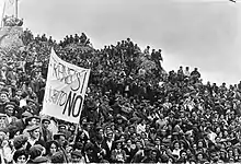Some authors lambasted carlo-francoists as traitors pure and simple.[44] In such case they were usually presented as people who betrayed Traditionalism for the sake of their own, personal interest, which either took shape of political power or translated into wealth and material gain.[45] Other scholars agree that numerous individuals have probably joined due to opportunism and careerism; they concluded that active engagement in Francoist structures would improve their personal lot, and that non-participation would harm their position.[46] However, there were also numerous political mechanisms responsible for Carlist access.