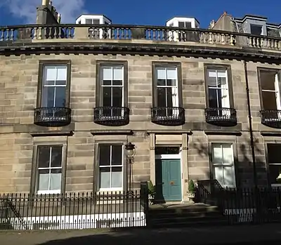 Following the social changes after the First World War, up to half of the houses were turned into small private hotels, which in some cases lasted down to this century. Furthermore, from the 1930s, there were offices, including the Commissioner for Special Areas, followed by the Royal Observer Corps and the Scottish Home Office in numbers 13 and 14.[7] Towards the end of the 20th century, the South Edinburgh School of Nursing was at 15, 16, and 17 (still indicated by a marble step with Carlton House in black letters[8]) and the Ingleby Gallery of modern art was at number 6.