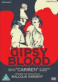 Carmen is a 1931 British musical film directed by Cecil Lewis and starring Marguerite Namara, Thomas F. Burke and Lance Fairfax.[1] It is an adaptation of the opera Carmen by Georges Bizet. It is also known by the alternative title of Gipsy Blood. It was produced by British International Pictures, the country's leading company of the early sound era, and shot at the Elstree Studios near London.[2]
